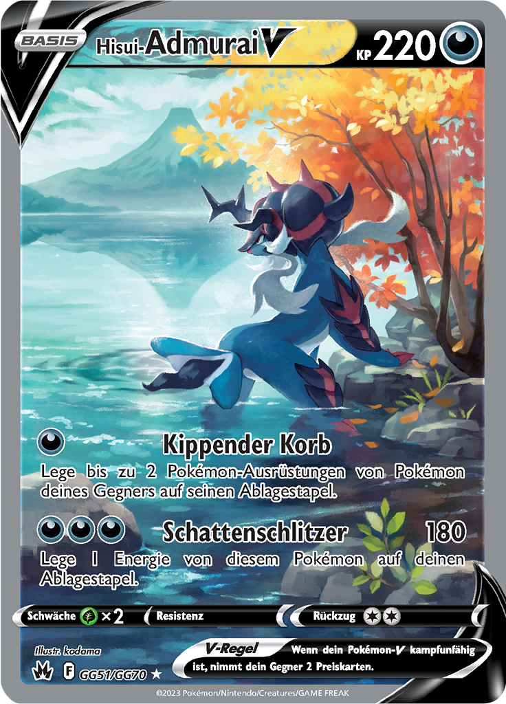 | Kaufen? | Kaufen Sie Ihre Hisui-Admurai V Pokemon-Karte aus dem Zenit der Könige - Galar-Galerie-Erweiterung. |