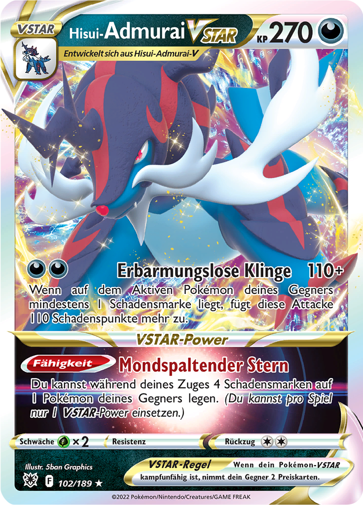 | Kaufen? | Kaufen Sie Ihre Hisui-Admurai VSTAR Pokemon-Karte aus dem Astralglanz-Erweiterung. |