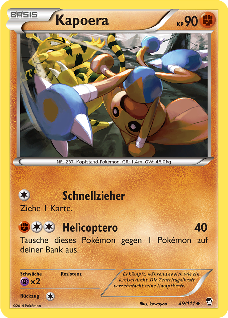 | Kaufen? | Kaufen Sie Ihre Kapoera Pokemon-Karte aus dem Fliegende Fäuste-Erweiterung. |