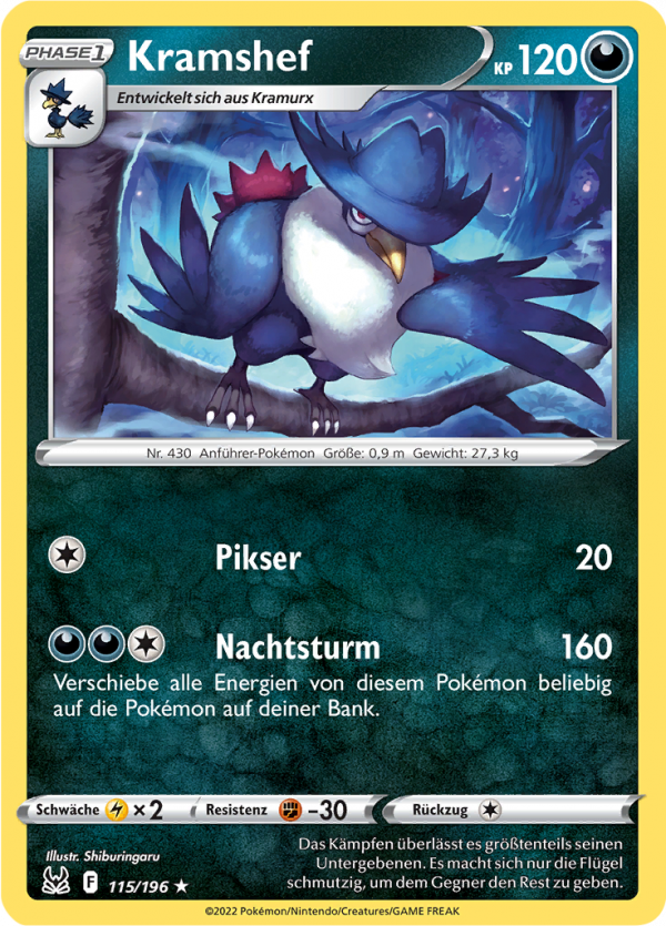 | Kaufen? | Kaufen Sie Ihre Kramshef Pokemon-Karte aus dem Verlorener Ursprung-Erweiterung. |