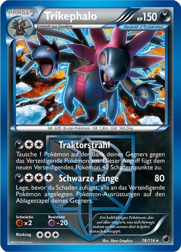 | Kaufen? | Kaufen Sie Ihre Trikephalo Pokemon-Karte aus dem Plasma-Frost-Erweiterung. |
