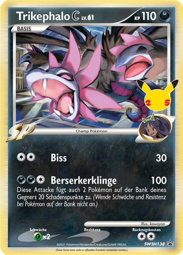 | Kaufen? | Kaufen Sie Ihre Trikephalo C Pokemon-Karte aus dem Schwert & Schild Promos-Erweiterung. |