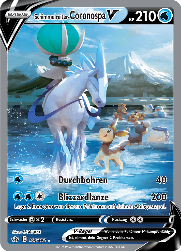 | Kaufen? | Kaufen Sie Ihre Schimmelreiter-Coronospa V Pokemon-Karte aus dem Schaurige Herrschaft-Erweiterung. |