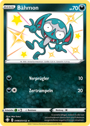 | Kaufen? | Kaufen Sie Ihre Bähmon Pokemon-Karte aus dem Reisegefahrten-Erweiterung. |