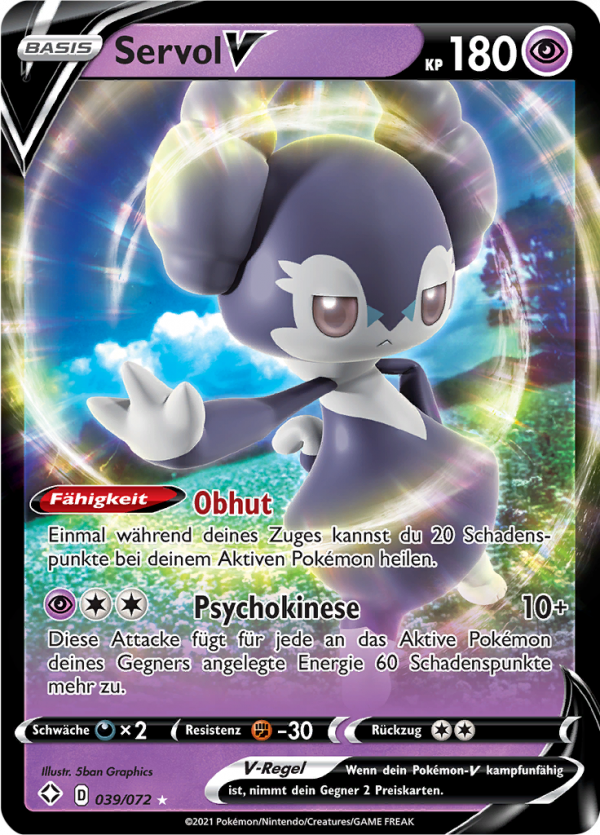 | Kaufen? | Kaufen Sie Ihre Servol V Pokemon-Karte aus dem Glänzendes Schicksal-Erweiterung. |