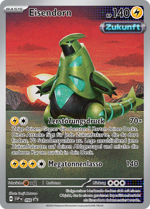 | Kaufen? | Kaufen Sie Ihre Eisendorn Pokemon-Karte aus dem Karmesin & Purpur Promos-Erweiterung. |
