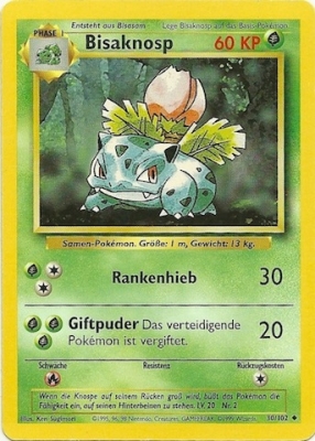 | Kaufen? | Kaufen Sie Ihre Bisaknosp Pokemon-Karte aus dem Pokemon 151-Erweiterung. |