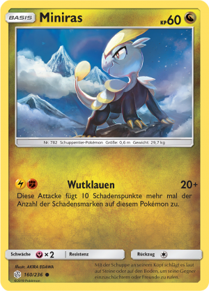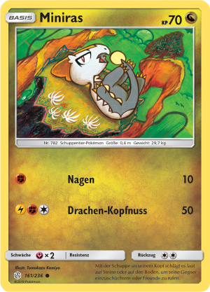 | Alle Karten | Sehen Sie alle Miniras-Pokémonkarten in einer Übersicht. |
