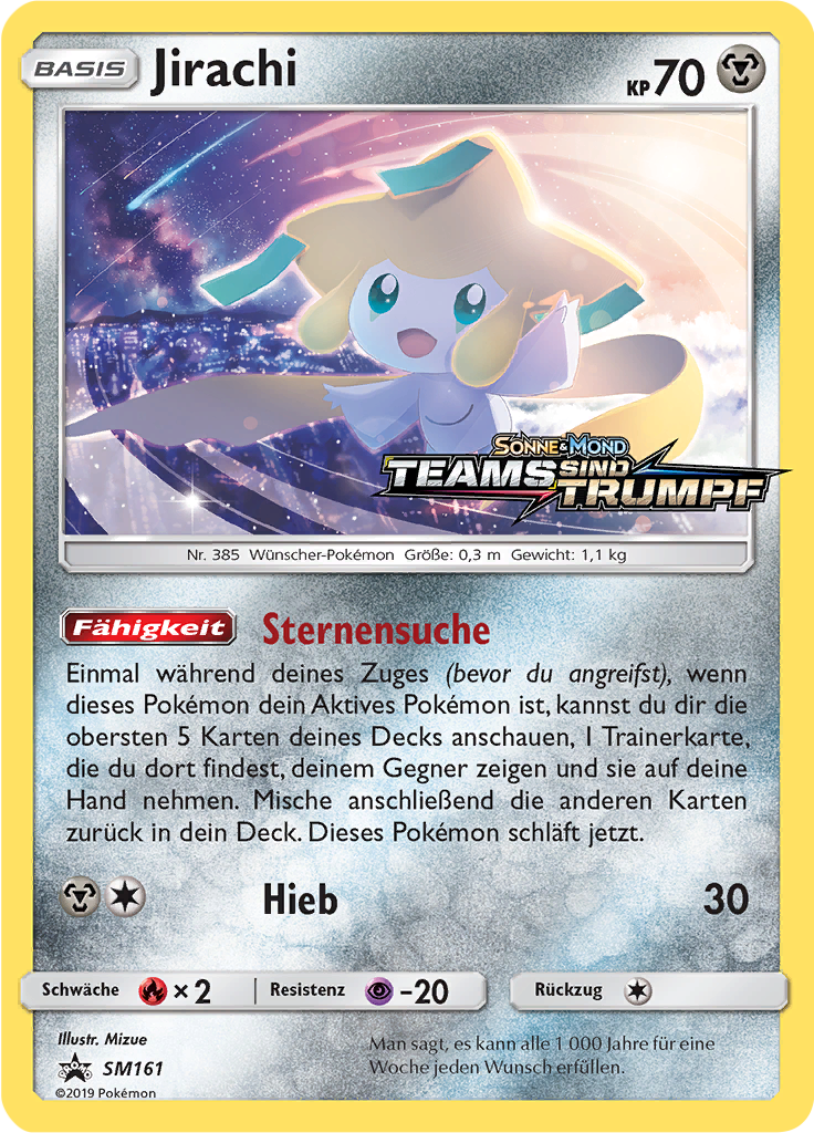 | Kaufen? | Kaufen Sie Ihre Jirachi Pokemon-Karte aus dem Sun & Moon Promos-Erweiterung. |