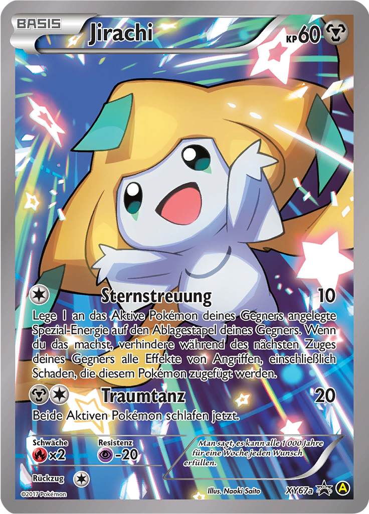 | Kaufen? | Kaufen Sie Ihre Jirachi Pokemon-Karte aus dem XY Promos-Erweiterung. |