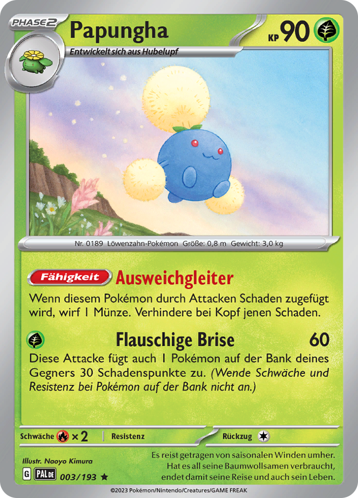 | Kaufen? | Kaufen Sie Ihre Papungha Pokemon-Karte aus dem Entwicklungen in Paldea-Erweiterung. |
