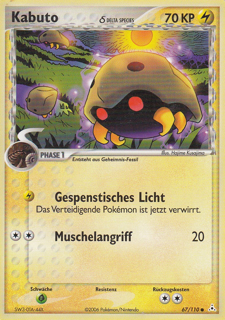 | Kaufen? | Kaufen Sie Ihre Kabuto Pokemon-Karte aus dem Holon Phantoms-Erweiterung. |