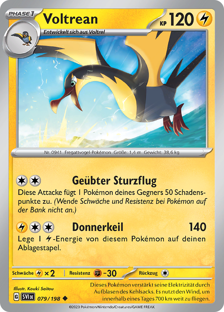 | Kaufen? | Kaufen Sie Ihre Voltrean Pokemon-Karte aus dem Karmesin & Purpur-Erweiterung. |