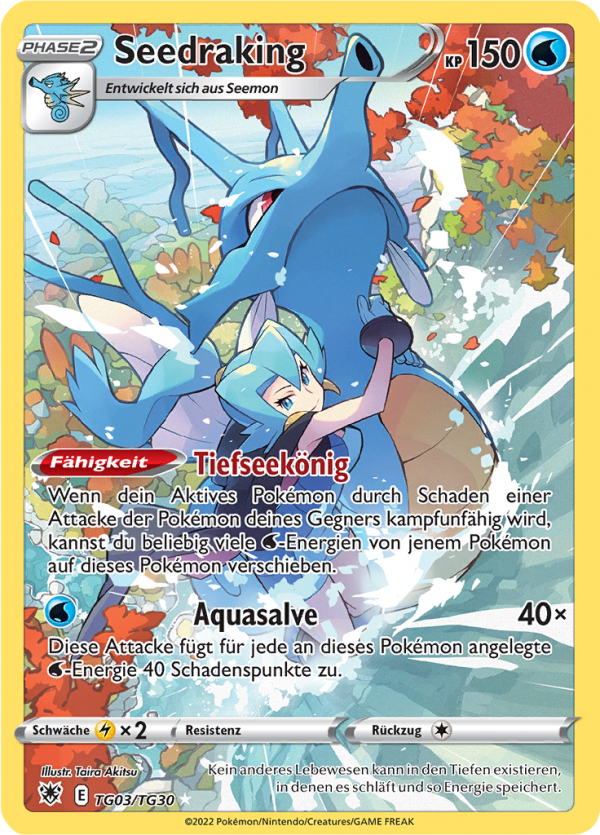 | Kaufen? | Kaufen Sie Ihre Seedraking Pokemon-Karte aus dem Astralglanz - Trainergalerie-Erweiterung. |