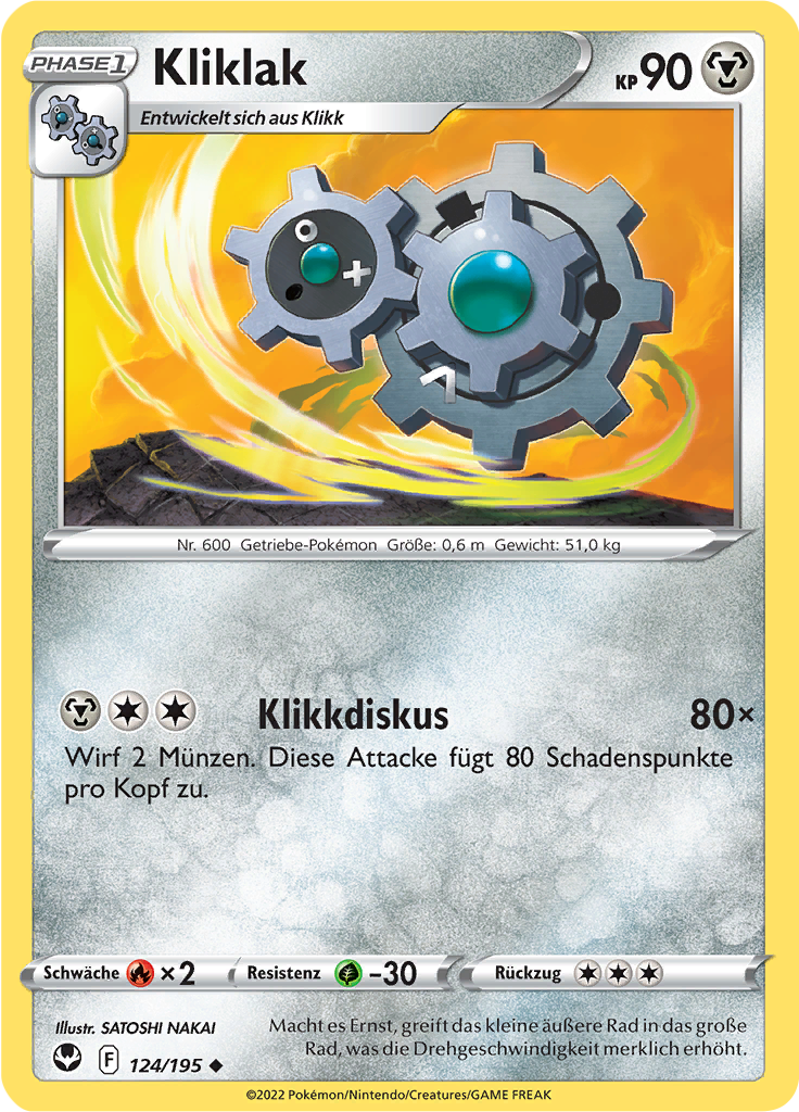 | Kaufen? | Kaufen Sie Ihre Kliklak Pokemon-Karte aus dem Silberne Sturmwinde-Erweiterung. |
