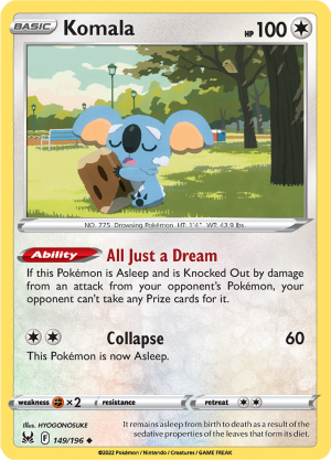 | Alle Karten | Sehen Sie alle Komala-Pokémonkarten in einer Übersicht. |