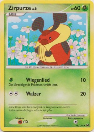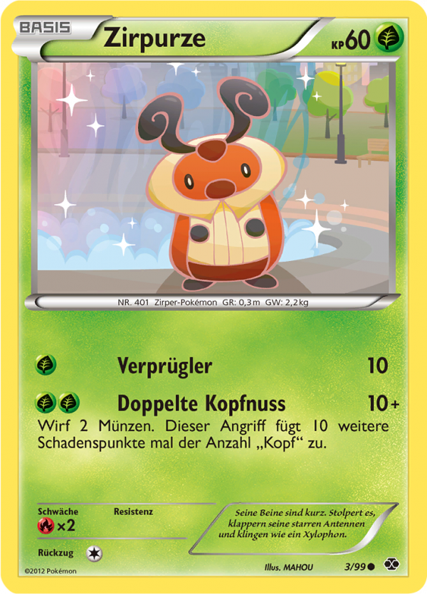 | Alle Karten | Sehen Sie alle Zirpurze-Pokémonkarten in einer Übersicht. |