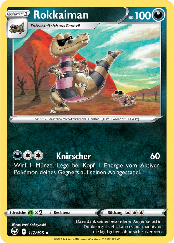 | Kaufen? | Kaufen Sie Ihre Rokkaiman Pokemon-Karte aus dem Silberne Sturmwinde-Erweiterung. |