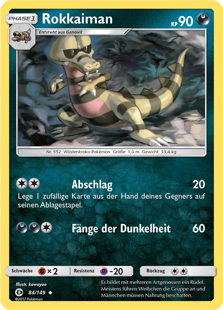 | Kaufen? | Kaufen Sie Ihre Rokkaiman Pokemon-Karte aus dem Sonne & Mond-Erweiterung. |