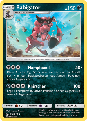 | Alle Karten | Sehen Sie alle Rabigator-Pokémonkarten in einer Übersicht. |
