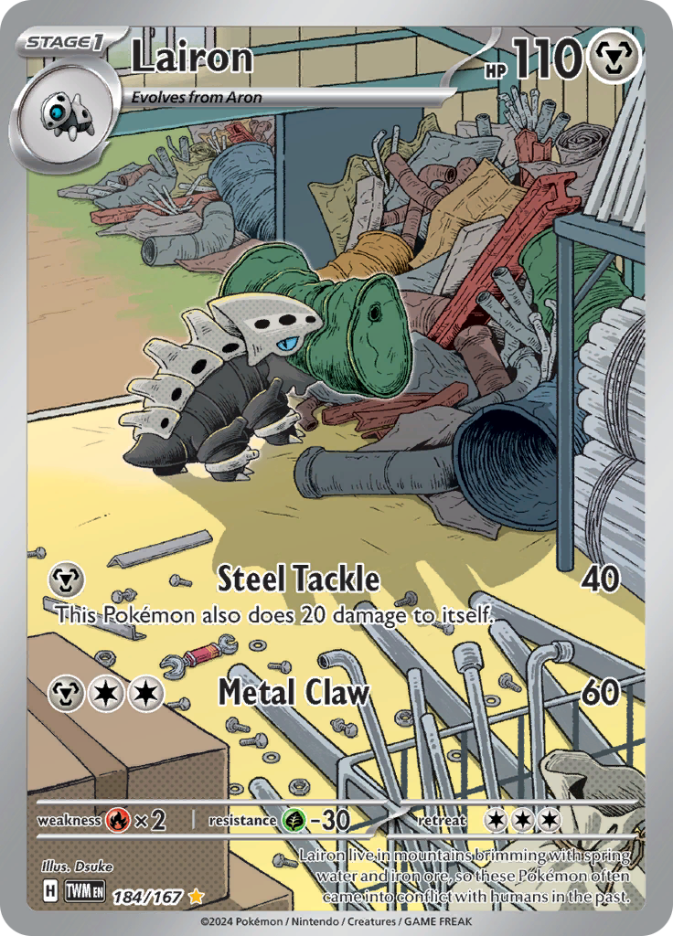 | Kaufen? | Kaufen Sie Ihre Lairon Pokemon-Karte aus dem Twilight Masquerade-Erweiterung. |