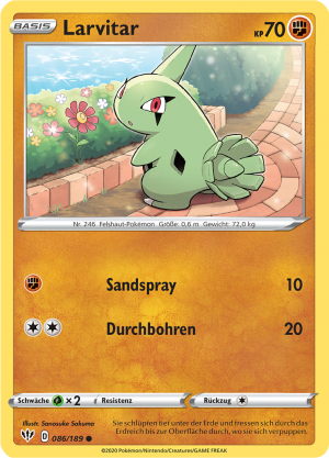 | Kaufen? | Kaufen Sie Ihre Larvitar Pokemon-Karte aus dem Reisegefahrten-Erweiterung. |