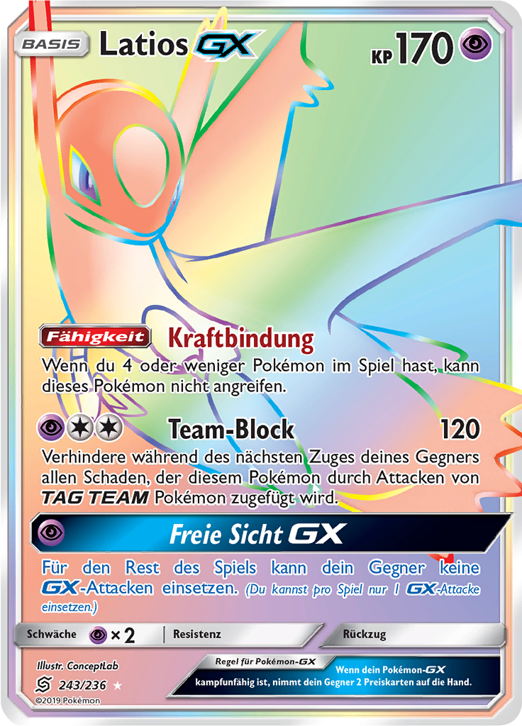 | Kaufen? | Kaufen Sie Ihre Latios-GX Pokemon-Karte aus dem Bund der Gleichgesinnten-Erweiterung. |