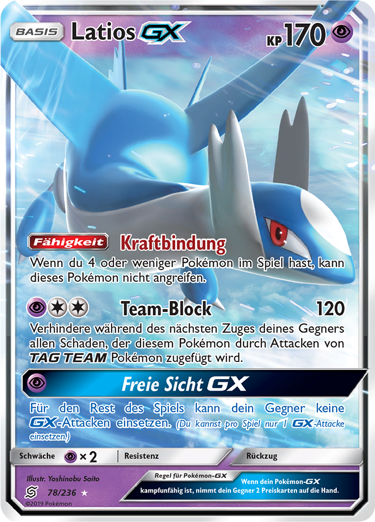 | Kaufen? | Kaufen Sie Ihre Latios-GX Pokemon-Karte aus dem Bund der Gleichgesinnten-Erweiterung. |