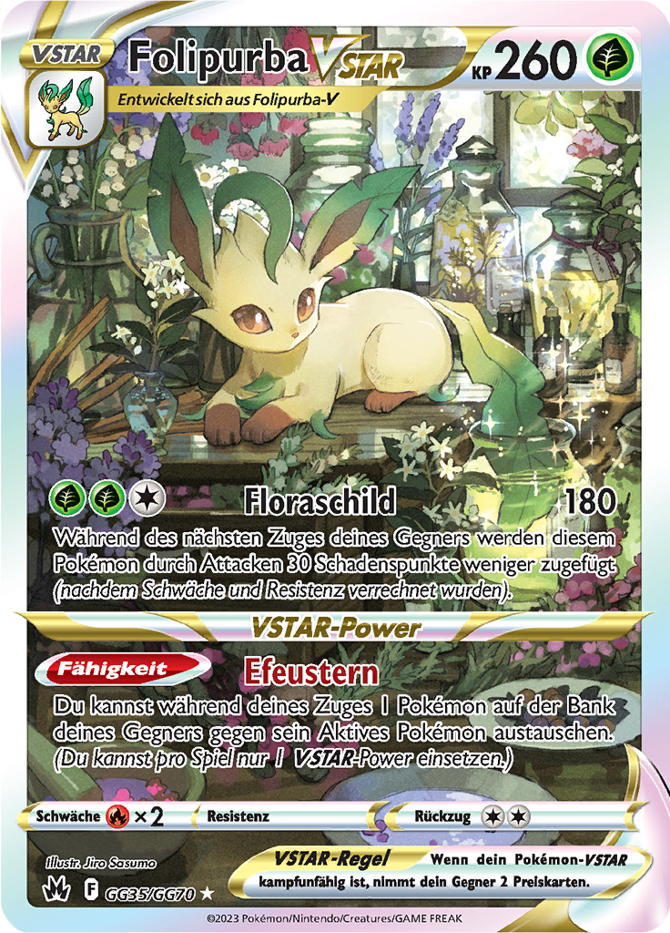 | Kaufen? | Kaufen Sie Ihre Folipurba VSTAR Pokemon-Karte aus dem Zenit der Könige - Galar-Galerie-Erweiterung. |