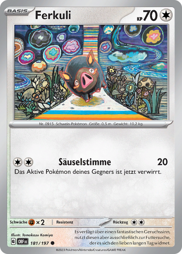 | Kaufen? | Kaufen Sie Ihre Ferkuli Pokemon-Karte aus dem Obsidianflammen-Erweiterung. |