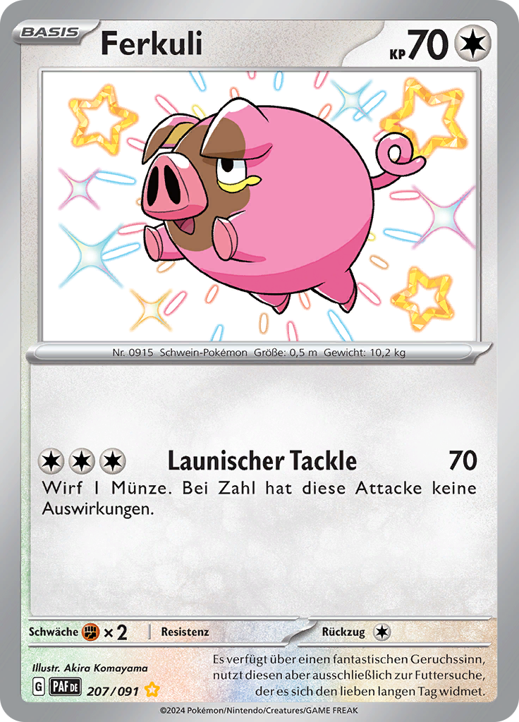 | Kaufen? | Kaufen Sie Ihre Ferkuli Pokemon-Karte aus dem Paldeas Schicksale-Erweiterung. |