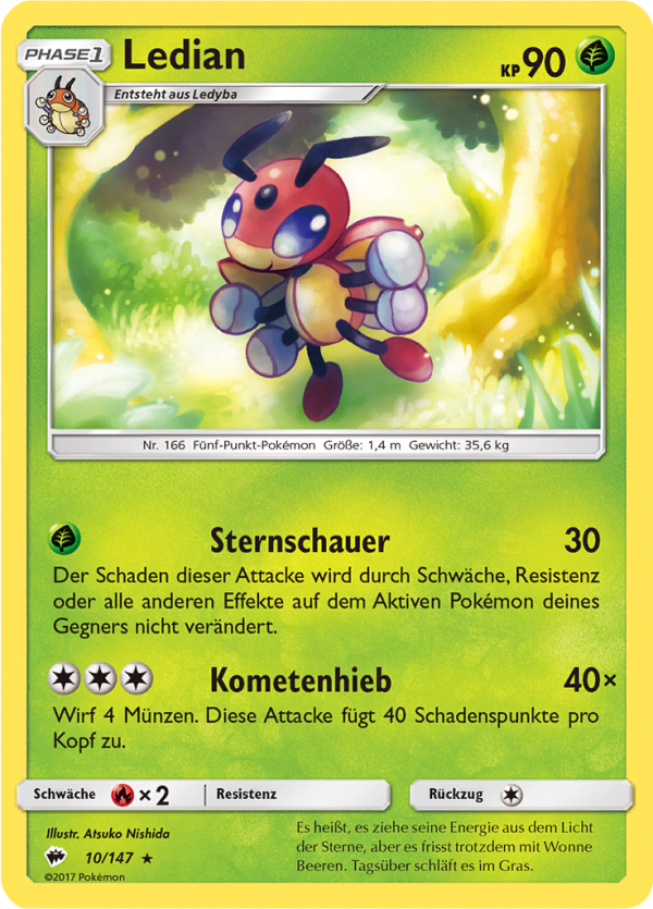 | Alle Karten | Sehen Sie alle Ledian-Pokémonkarten in einer Übersicht. |