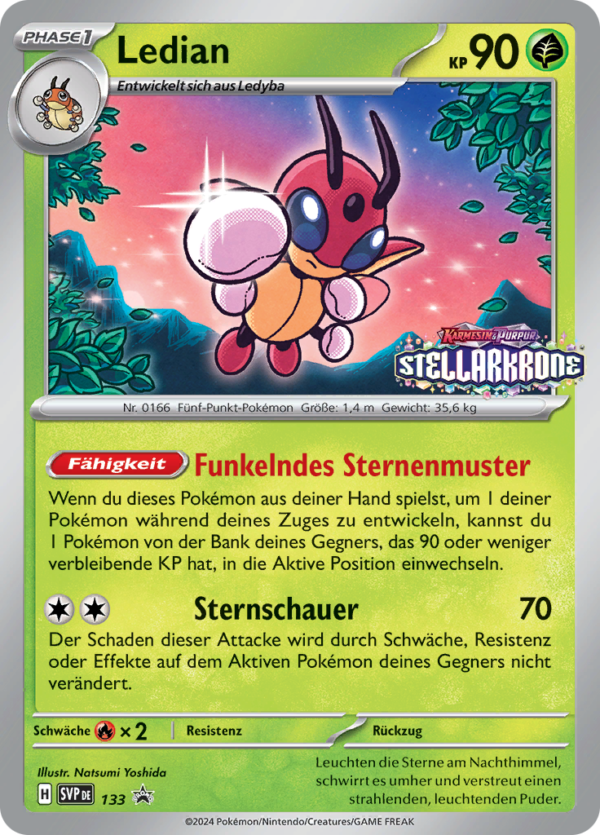 | Kaufen? | Kaufen Sie Ihre Ledian Pokemon-Karte aus dem Karmesin & Purpur Promos-Erweiterung. |