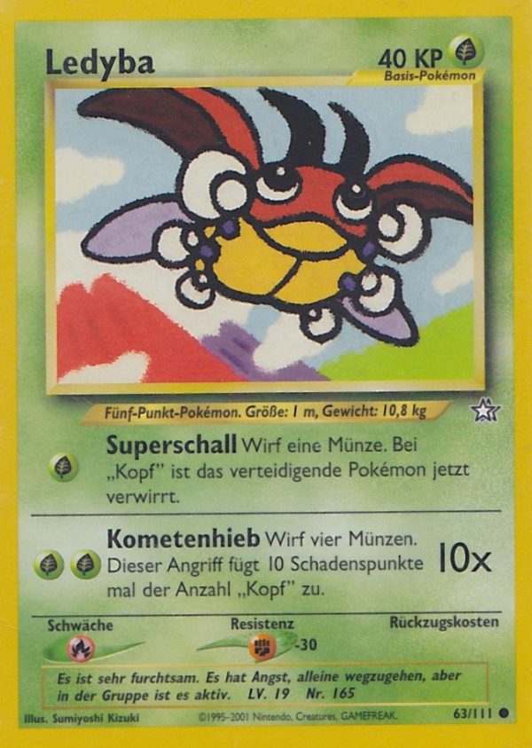 | Kaufen? | Kaufen Sie Ihre Ledyba Pokemon-Karte aus dem Neo Genesis-Erweiterung. |