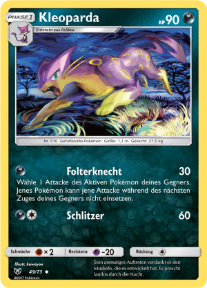 | Alle Karten | Sehen Sie alle Kleoparda-Pokémonkarten in einer Übersicht. |