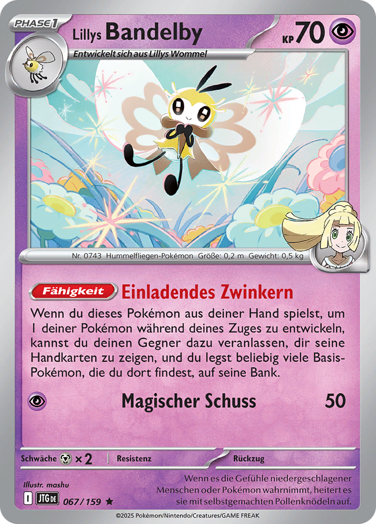 | Kaufen? | Kaufen Sie Ihre Lillys Bandelby Pokemon-Karte aus dem Reisegefahrten-Erweiterung. |