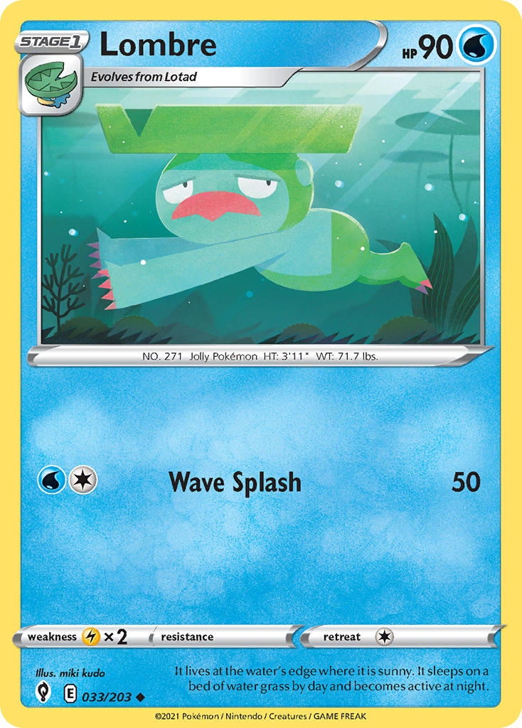 | Kaufen? | Kaufen Sie Ihre Lombre Pokemon-Karte aus dem Evolving Skies-Erweiterung. |
