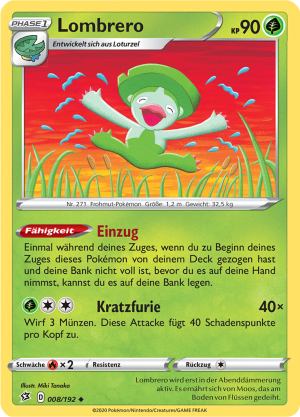 | Kaufen? | Kaufen Sie Ihre Lombrero Pokemon-Karte aus dem Reisegefahrten-Erweiterung. |
