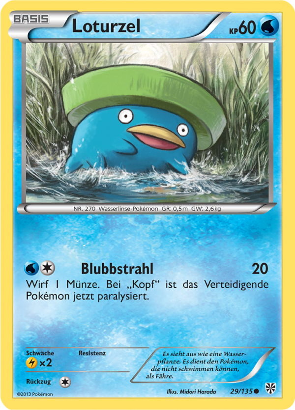 | Kaufen? | Kaufen Sie Ihre Loturzel Pokemon-Karte aus dem Plasma-Sturm-Erweiterung. |