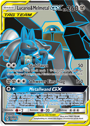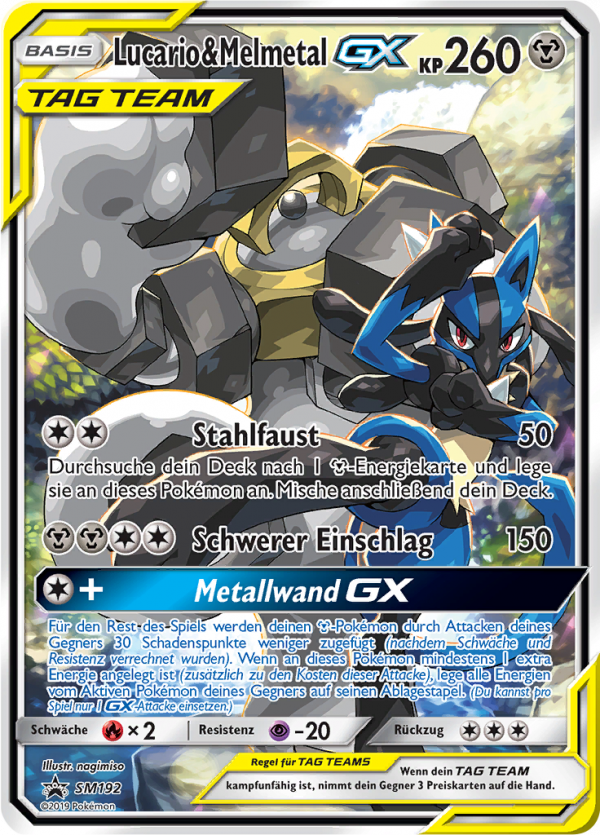 | Kaufen? | Kaufen Sie Ihre Lucario & Melmetal-GX Pokemon-Karte aus dem Sun & Moon Promos-Erweiterung. |