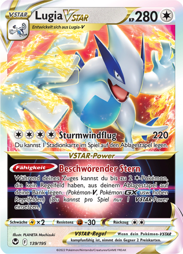 | Kaufen? | Kaufen Sie Ihre Lugia VSTAR Pokemon-Karte aus dem Silberne Sturmwinde-Erweiterung. |