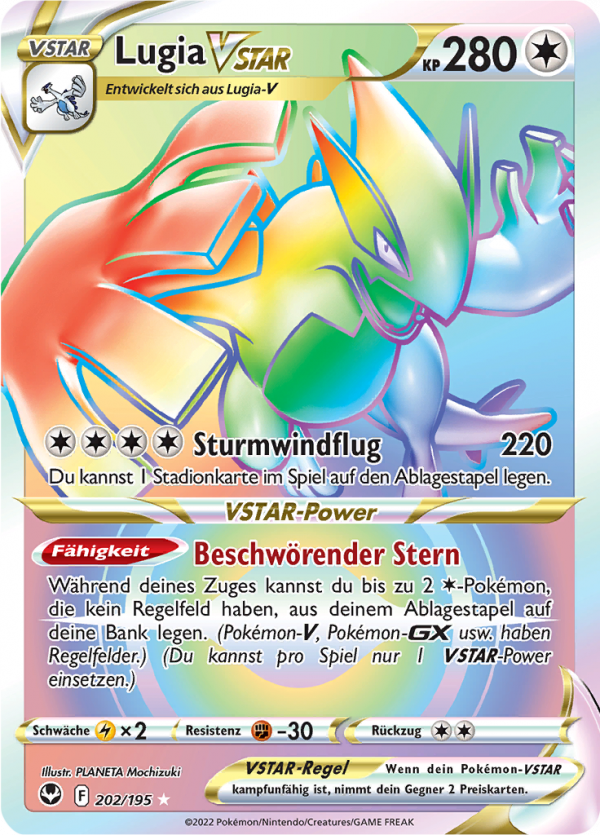 | Kaufen? | Kaufen Sie Ihre Lugia VSTAR Pokemon-Karte aus dem Silberne Sturmwinde-Erweiterung. |