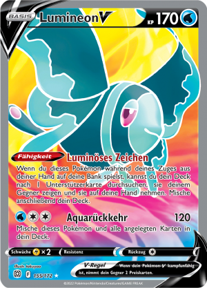 | Kaufen? | Kaufen Sie Ihre Lumineon V Pokemon-Karte aus dem Zenit der Könige - Galar-Galerie-Erweiterung. |