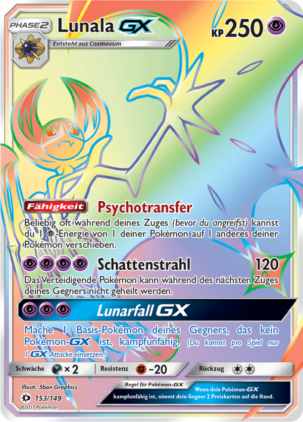 | Kaufen? | Kaufen Sie Ihre Lunala-GX Pokemon-Karte aus dem Sonne & Mond-Erweiterung. |