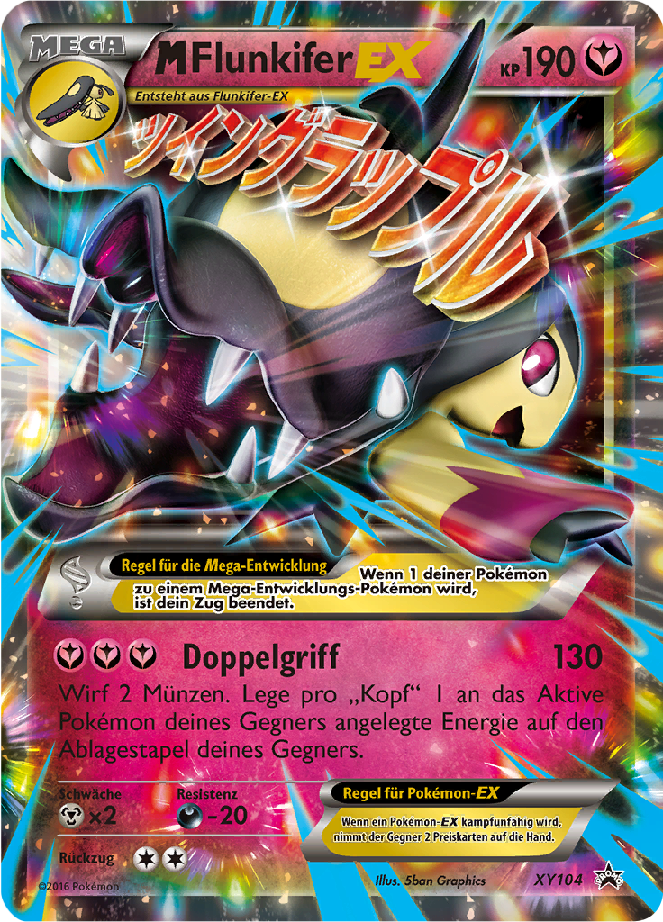 | Kaufen? | Kaufen Sie Ihre M-Flunkifer-EX Pokemon-Karte aus dem XY Promos-Erweiterung. |