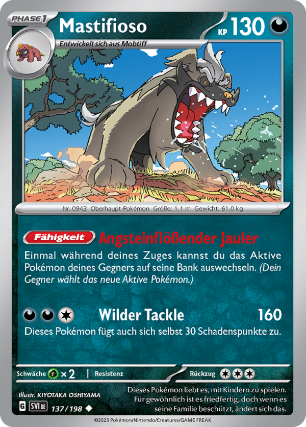 | Kaufen? | Kaufen Sie Ihre Mastifioso Pokemon-Karte aus dem Karmesin & Purpur-Erweiterung. |