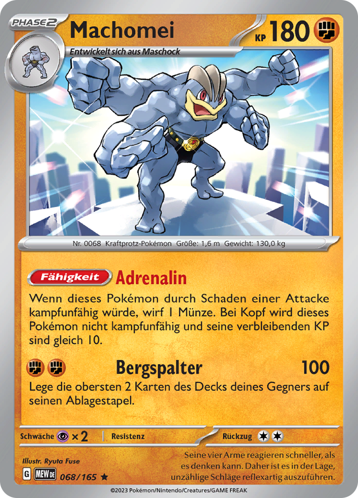 | Kaufen? | Kaufen Sie Ihre Machomei Pokemon-Karte aus dem Pokemon 151-Erweiterung. |