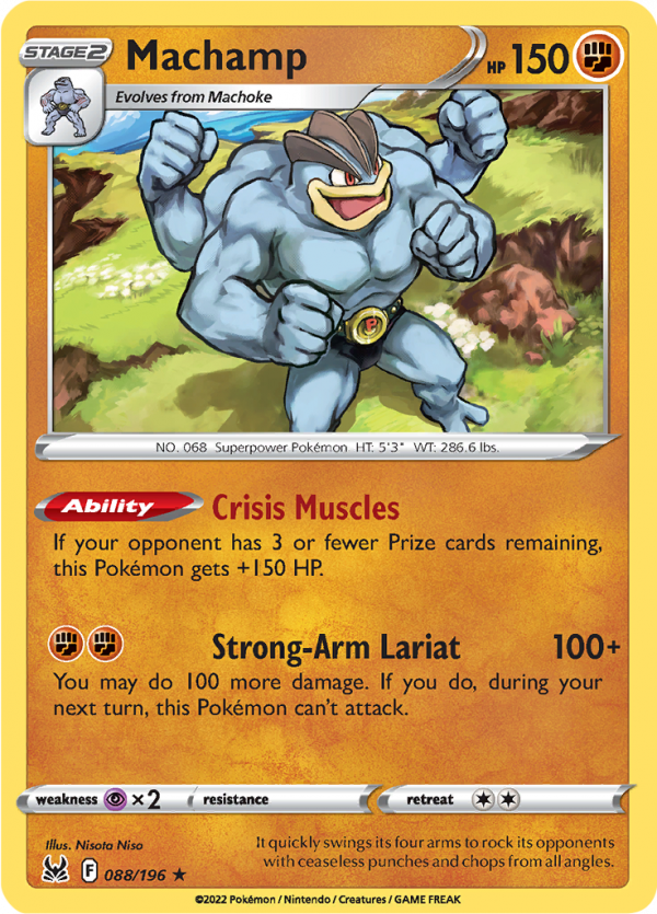 | Kaufen? | Kaufen Sie Ihre Machamp Pokemon-Karte aus dem Lost Origin-Erweiterung. |