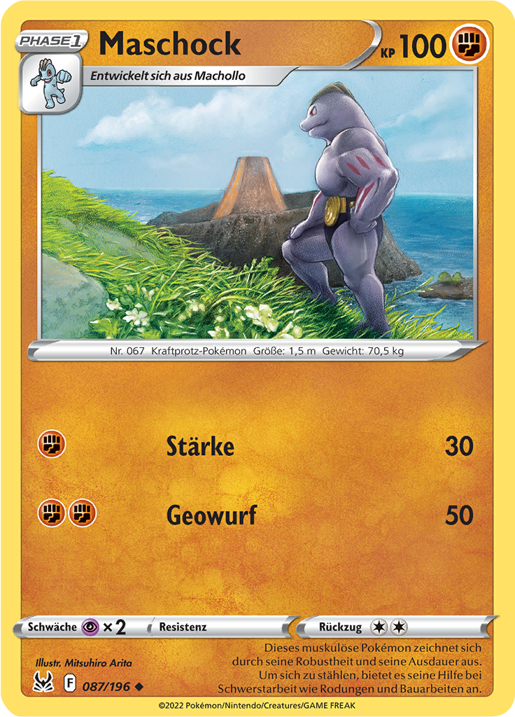 | Kaufen? | Kaufen Sie Ihre Maschock Pokemon-Karte aus dem Verlorener Ursprung-Erweiterung. |