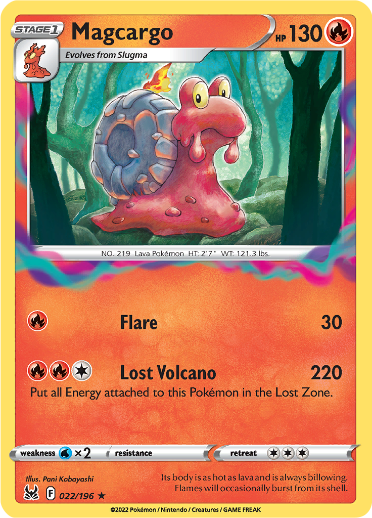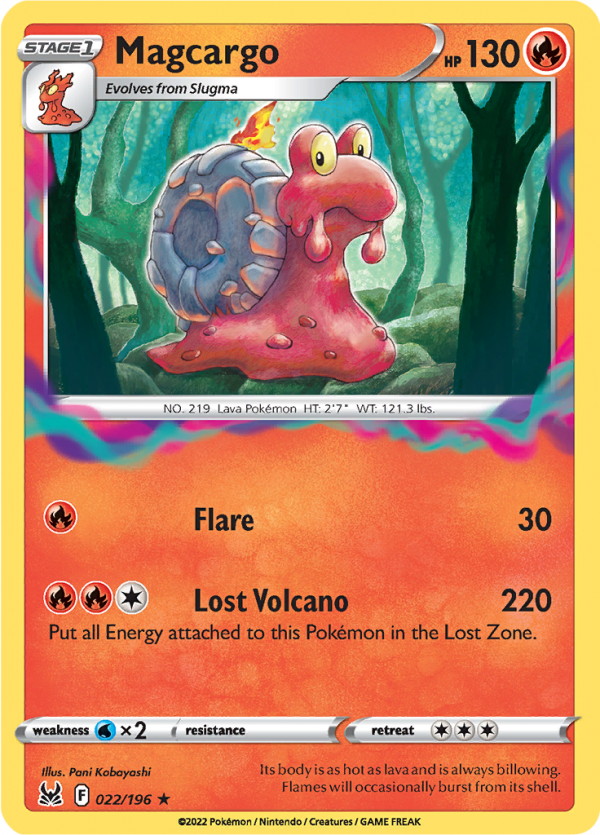| Kaufen? | Kaufen Sie Ihre Magcargo Pokemon-Karte aus dem Lost Origin-Erweiterung. |